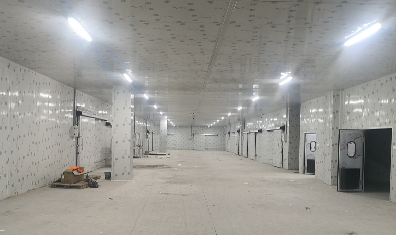 攀西地區(qū)的電商配送&正好超市周轉(zhuǎn),占地約2500平方,冷庫內(nèi)高為4.5米,分冷凍庫3間、冷藏庫4間、預(yù)冷室1間、肉類加工間1間、包裝間1間、加工產(chǎn)品出貨區(qū)1間,各冷庫溫度不同均由自動控制。